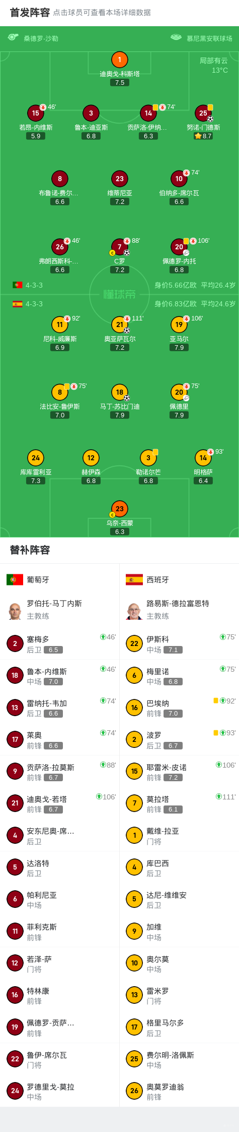 整场比赛中,双方球员都展现出了顶尖水平的表现。C罗在关键时刻挺身而出,攻入关键进球;而西班牙球员也表现出色,展示出自己的技术和意志力。比赛中的各种细节都展现出双方球员的拼搏精神和技术能力,为观众呈现了一场精彩的对决。